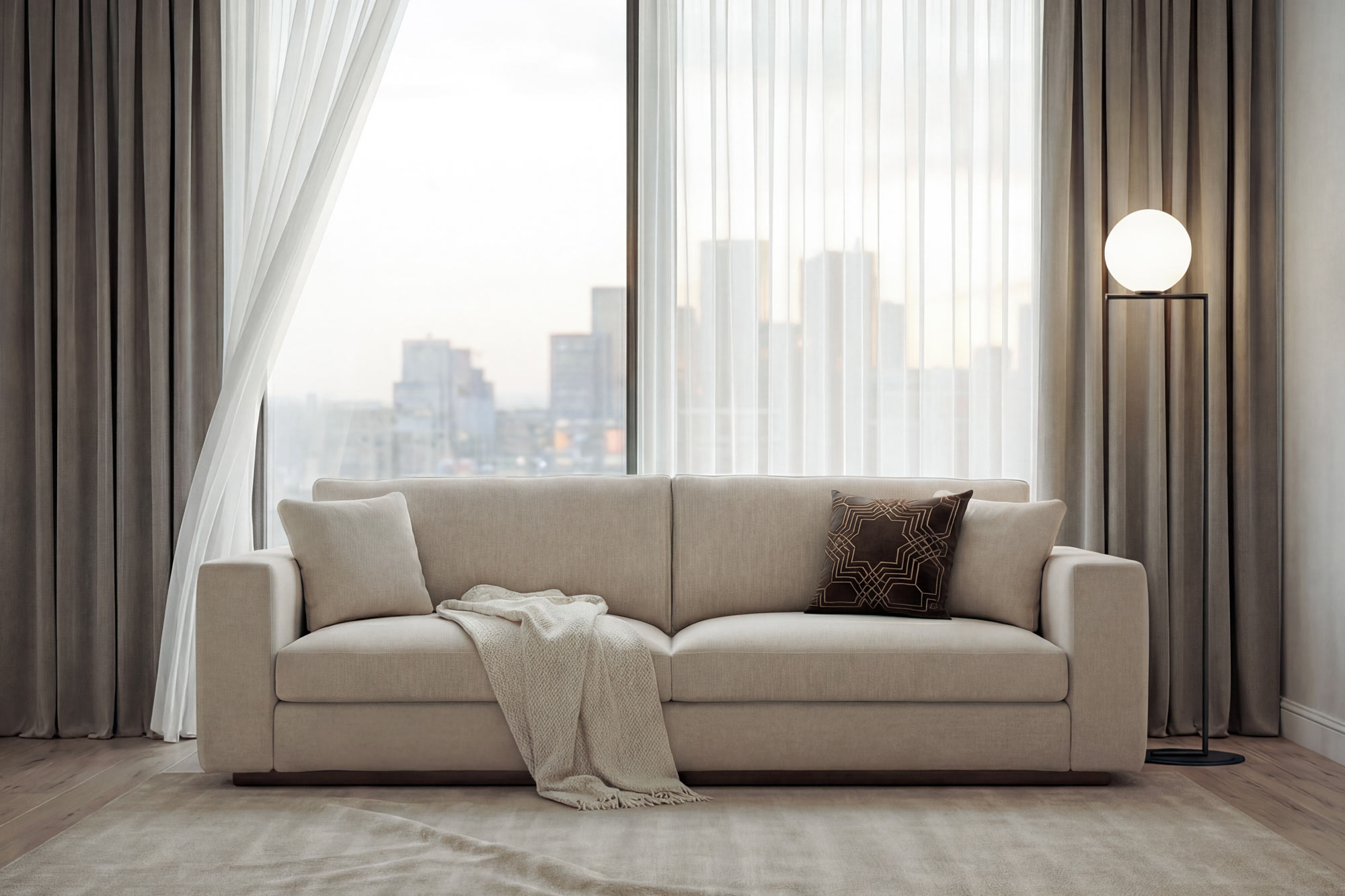 Canapé au design moderne et épuré, conçu avec des matériaux de qualité pour offrir confort et durabilité, il s’intègre facilement à différents styles de décoration.