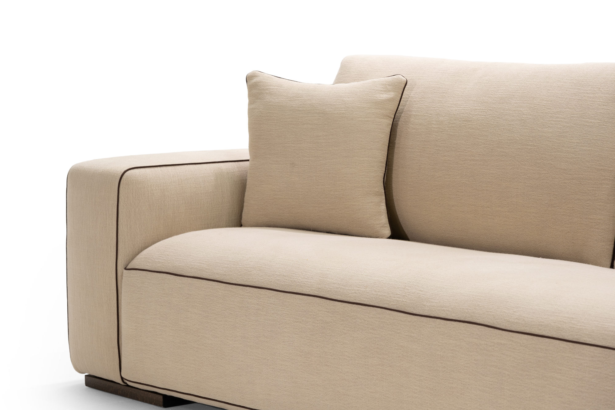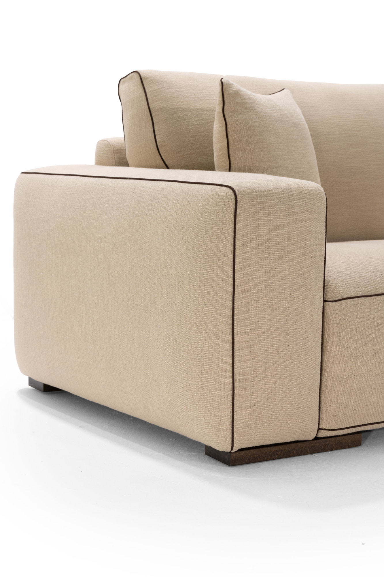 Canapé au design contemporain et aux lignes épurées, caractérisé par des volumes généreux et une allure élégante. Il allie confort et style, idéal pour les intérieurs modernes et raffinés.