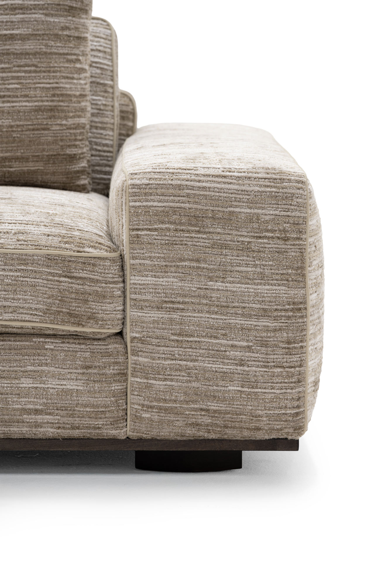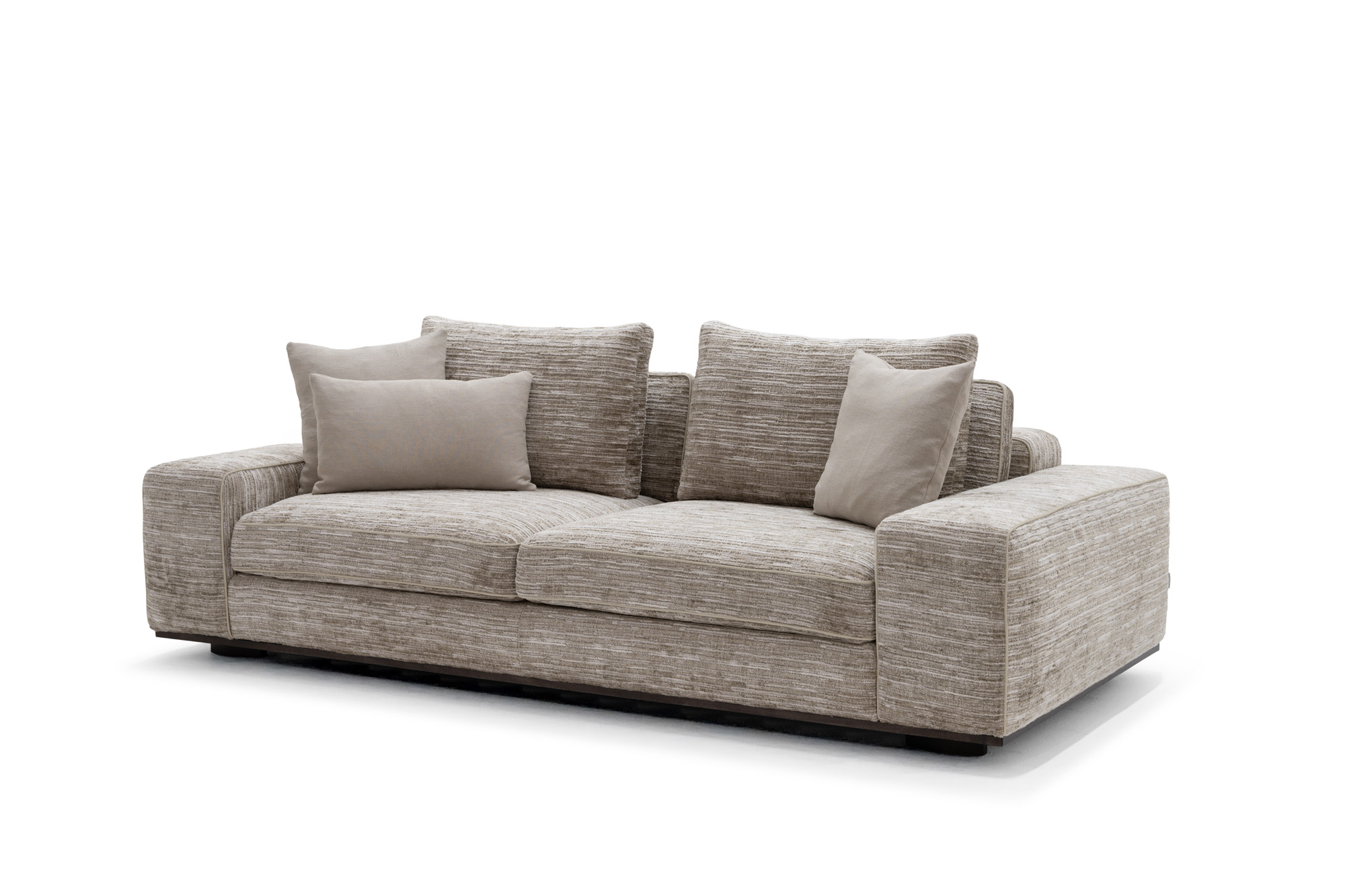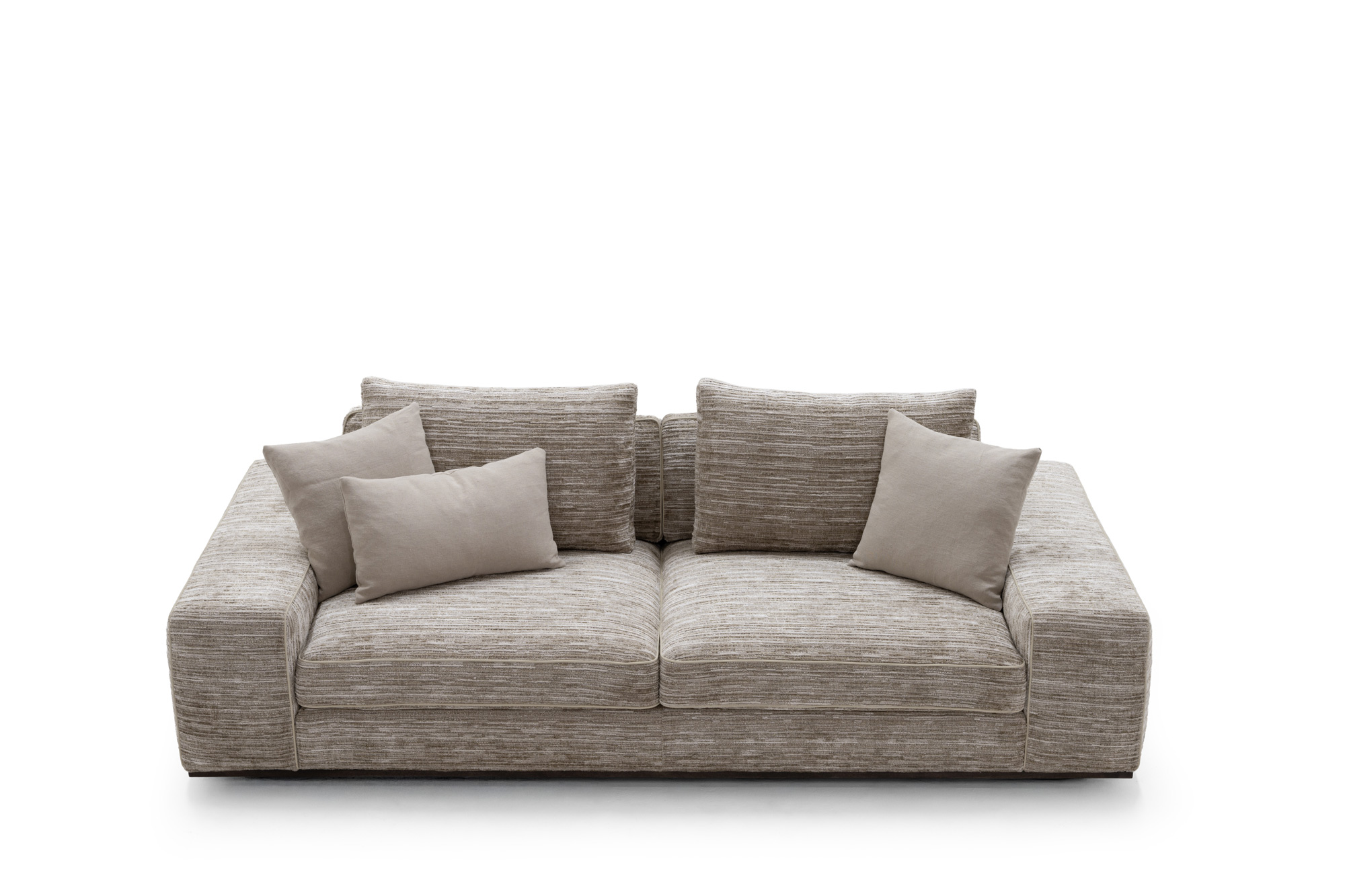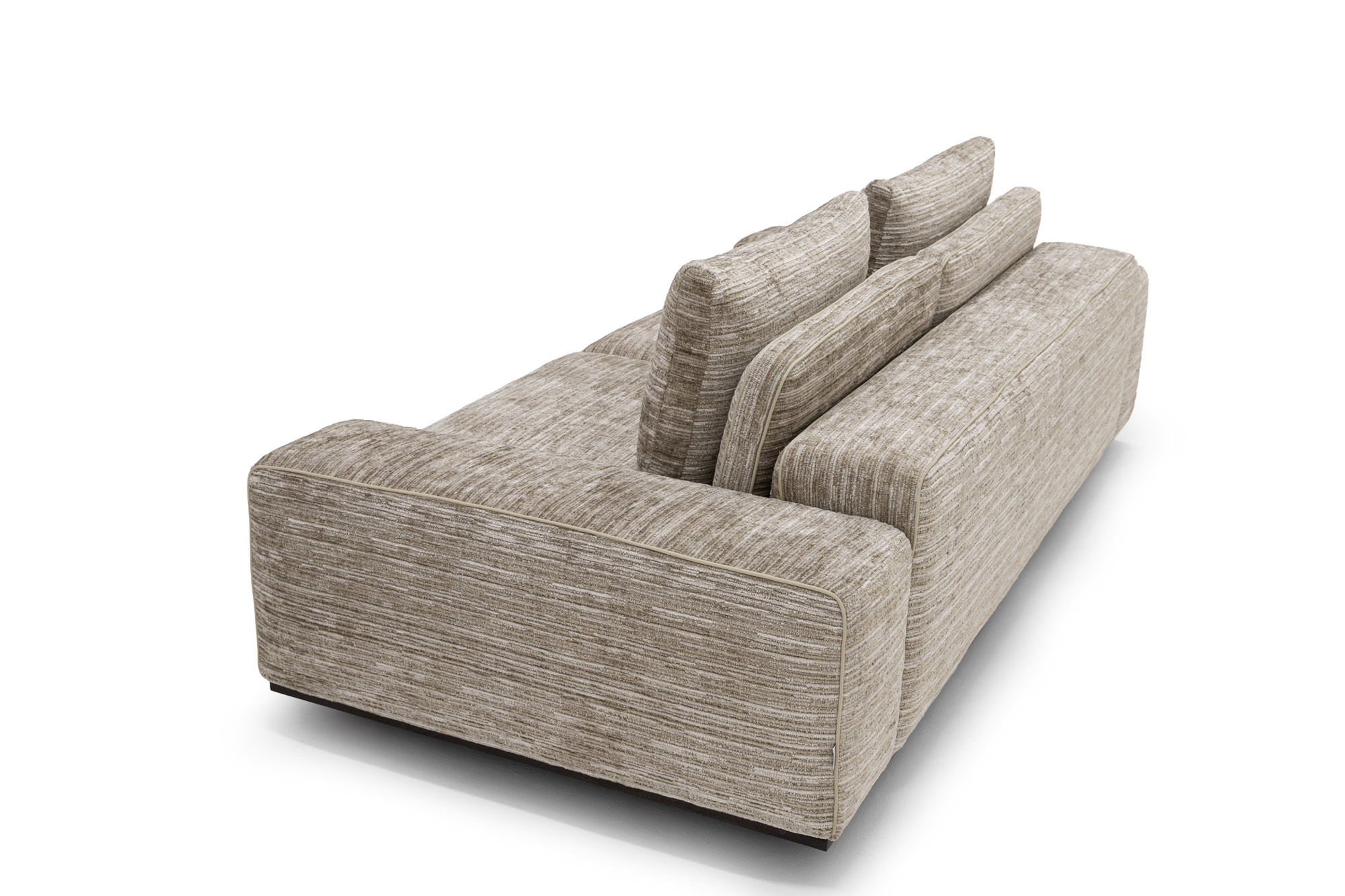 Canapé au design accueillant et moderne, caractérisé par des lignes douces et des proportions équilibrées. Il offre un haut niveau de confort grâce à ses larges assises et à ses coussins généreux, idéal pour créer une ambiance détendue et contemporaine.
